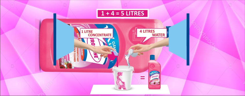 - Then add DSLFCC 100x @ 10Litre, mix uniformly by stirring rigorously up to minimum 15 minutes (at 150-200 RPM approx.) No need to wait for 24 hours. your 20x Lizol type floor cleaner is ready.